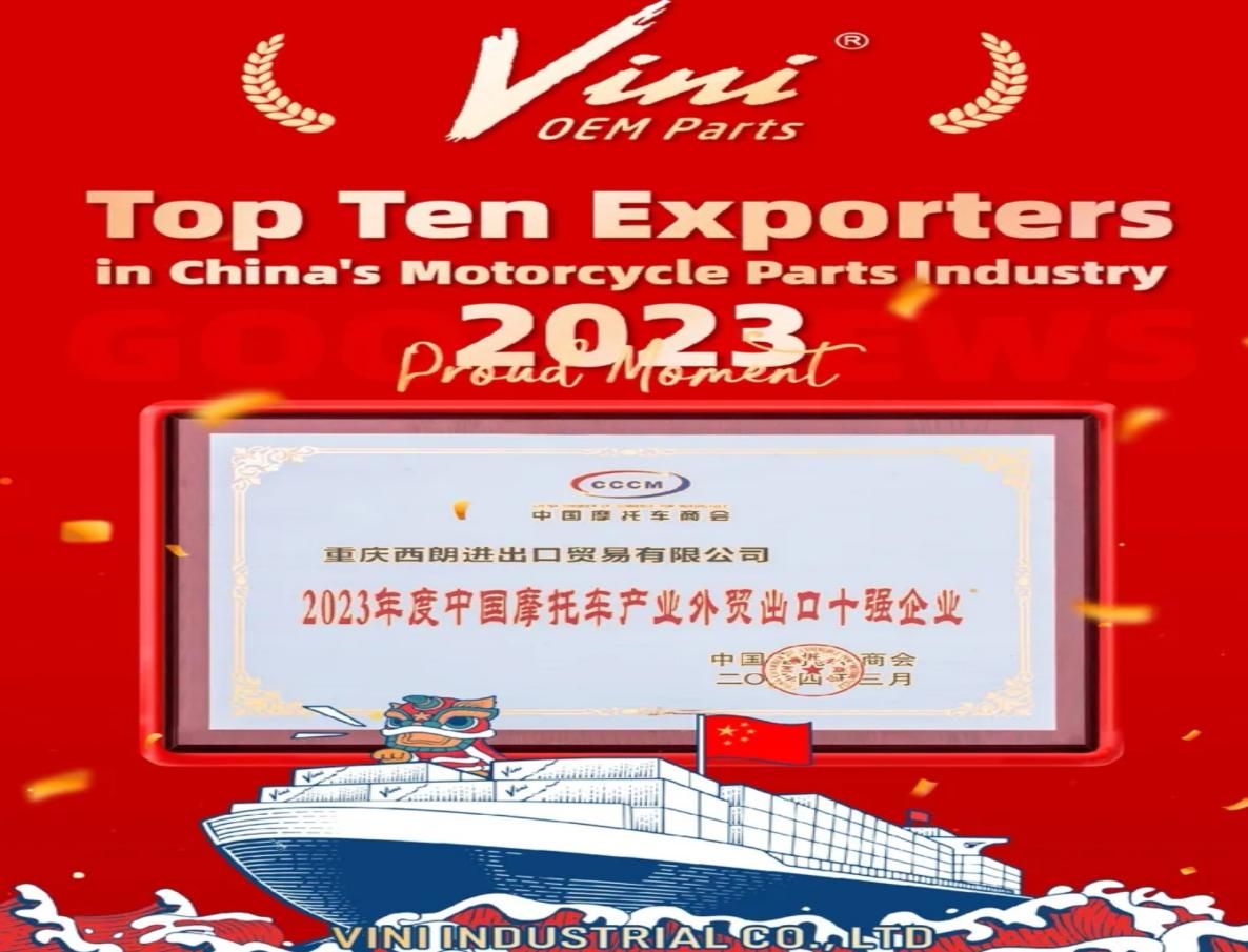 图1 西朗荣获“2023年度中国摩托车产业外贸出口十强企业”称号
