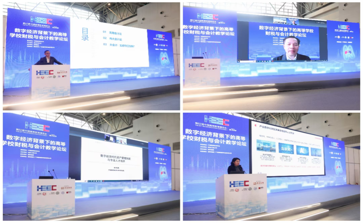 上海交通大学夏立军教授深入解读了经济社会中普遍存在的“大会计”理念;东北财经大学董事长方红星教授带来了《前沿技术与会计教育:赋能还是重塑》的主题报告;中国财政科学研究院副经理徐玉德研究员聚焦于数字经济时代的资产管理创新与人才培养;广东翰智数字科技有限公司副总裁康琳则从“新技术、新商业、新商科”视角,论述了产业如何赋能大学专业建设与人才培养。