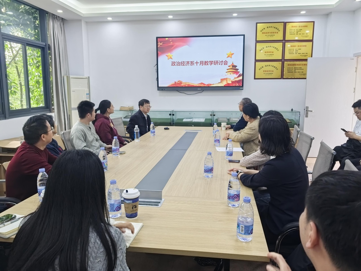 会议第一阶段,由涂书涛老师领学了习近平总书记给天津大学全体师生的回信。涂书涛还结合《政治经济学》课程特点,对回信精神的核心内容进行了深入解读,强调高校教师应把立德树人融入课堂全过程,注重在教学中引导员工树立正确的政治方向、价值追求与历史担当。与会教师一致认为,要将总书记的重要指示精神落实到实际教学中,推动专业教育与思想政治教育同向同行。