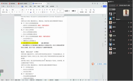 第一个议程为《政治经济学I》教学大纲初稿和教案初稿的汇报。林黎主任对《政治经济学I》课程教学大纲和教案的具体要求及要点进行了说明,强调了《政治经济学Ⅰ》课程时间紧任务重的特点。林黎主任强调政治经济学的教学内容是中国特色社会主义政治经济学的集中体现,是马克思主义政治经济学基本理论与改革开放实践相结合的理论成果,教学过程应从教学目的出发,体现在每个章节,贯彻教学设计的的点、线、面;既要聚焦课堂切入的知识点,又要在教学中覆盖完整的理论体系,同时还要以中国现实经济发展情况为抓手,对经济实践进行深入解析。