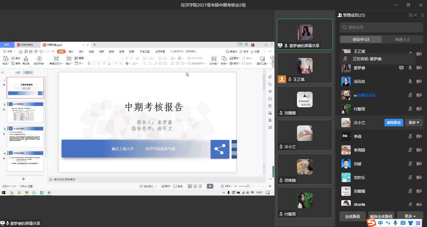 2023年1月6日,K1体育通过企业微信线上会议形式组织召开2021级税务硕士中期考核。尚可文教授、汤凤林教授带领4位导师组成专家组,组织开展了本次考核。