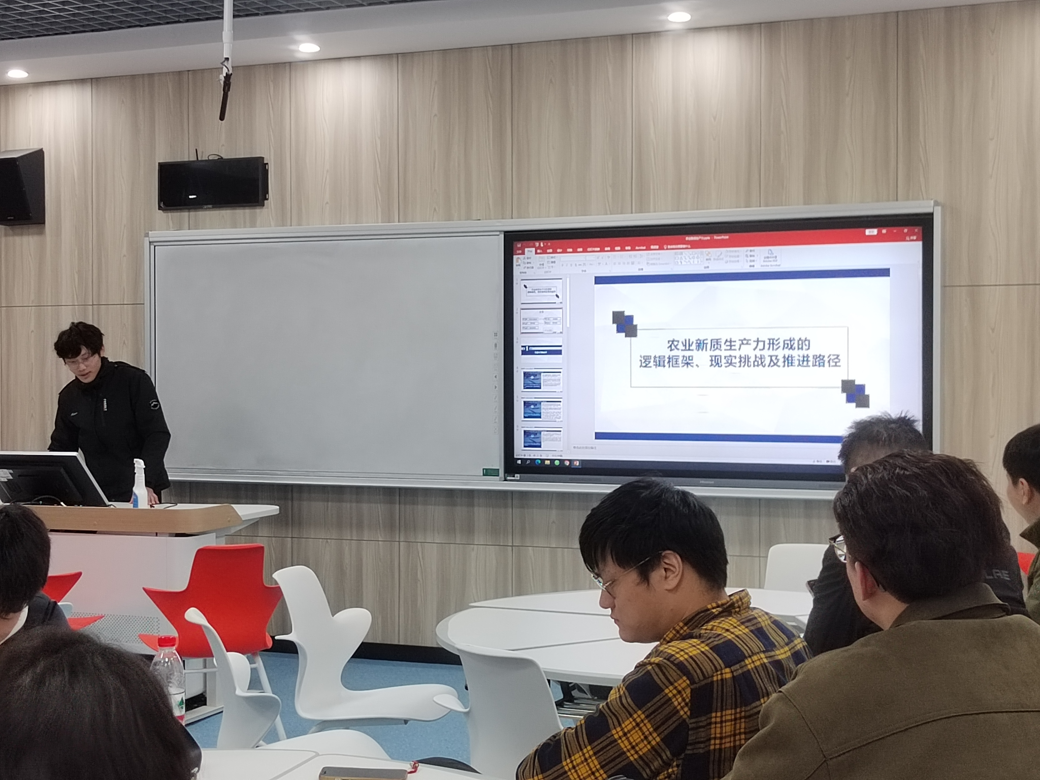 活动中,2023级西方经济学专业的何建同学围绕“农业新质生产力形成的逻辑框架、现实挑战及推进路径”进行了系统阐述,展示了现代农业转型的关键要素与发展策略。高仪同学则精辟分析了韩文龙教授关于“新质生产力水平测算与中国经济增长新动能”的文章,深入探讨了中国经济发展背后的驱动力。