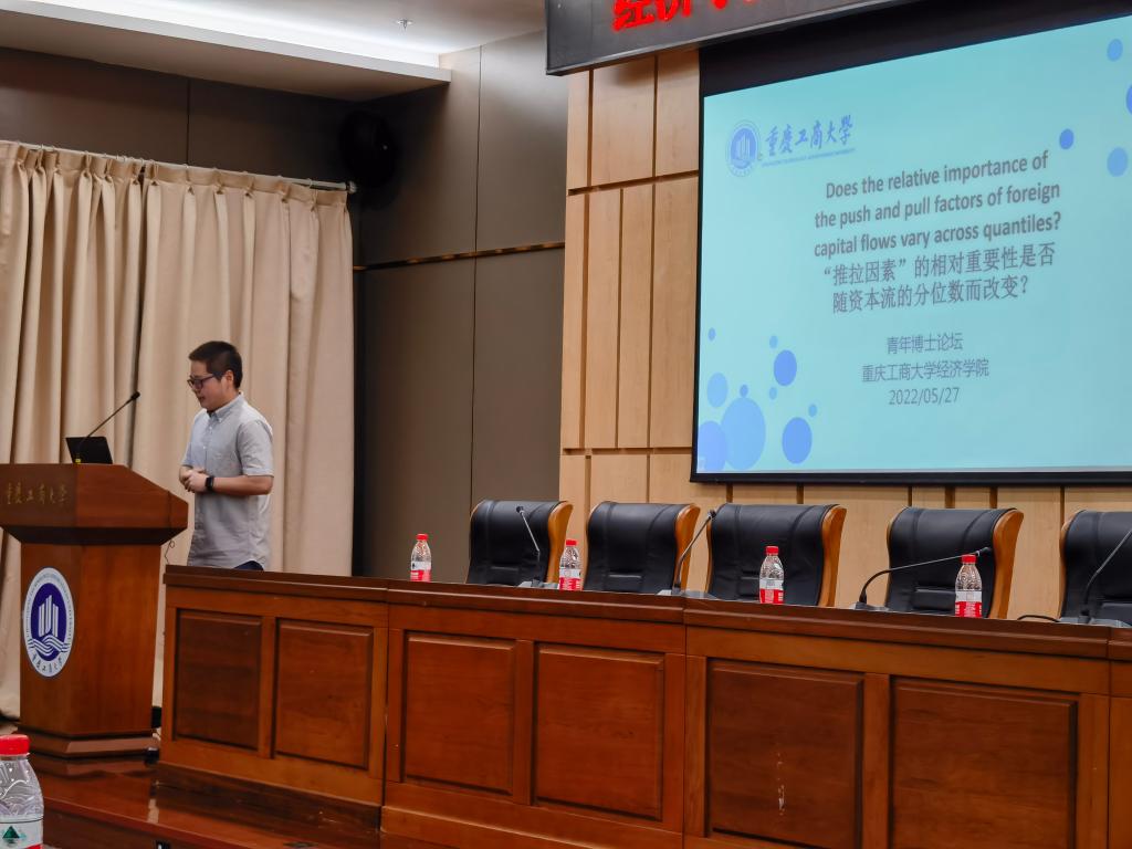 K1体育青年博士教师郭鹏飞分享了其在《数量经济技术经济研究》上发表的论文《中国网络基础设施资本回报率的区域差异与空间收敛性研究》,介绍了在论文组稿、数据分析等方面的经验做法。随后,K1体育青年博士教师王希晨论述了其在国际经济学领域国际著名刊物《IMF Economic Review》上发表的论文《Does the Relative Importance of the Push and Pull Factors of Foreign Capital Flows Vary Across Quantiles?》,分享了在数据获取、投稿历程等方面的心得体会。与会青年博士认真听取了两位博士教师的论文陈述,并就两篇论文开展了积极地探讨与交流,互学互鉴,通共有无。