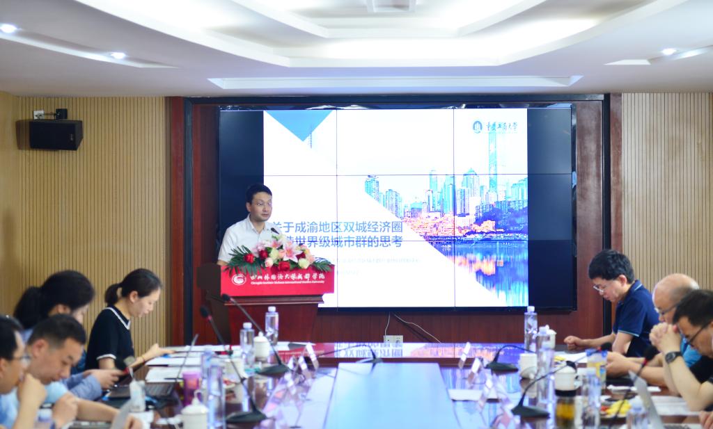 中心研究人员刘斌教授以《关于打造成渝地区双城经济圈世界级城市群的思考》为题,介绍了成渝地区打造世界级城市群的背景,分析了面临的中部地带发展“塌陷”问题,解析了城市层级上的“中部塌陷”“等级-规模”分布的“中部塌陷”等,以此提出成渝地区打造世界级城市群的未来思路:以制度创新为契机,以产业发展为引领,构建城市群产业协同发展新局面,培育一批具有国际影响力的次级中心城市,支撑成渝地区双城经济圈一体化发展,实现由国家级城市群向世界级城市群的历史性跨越。