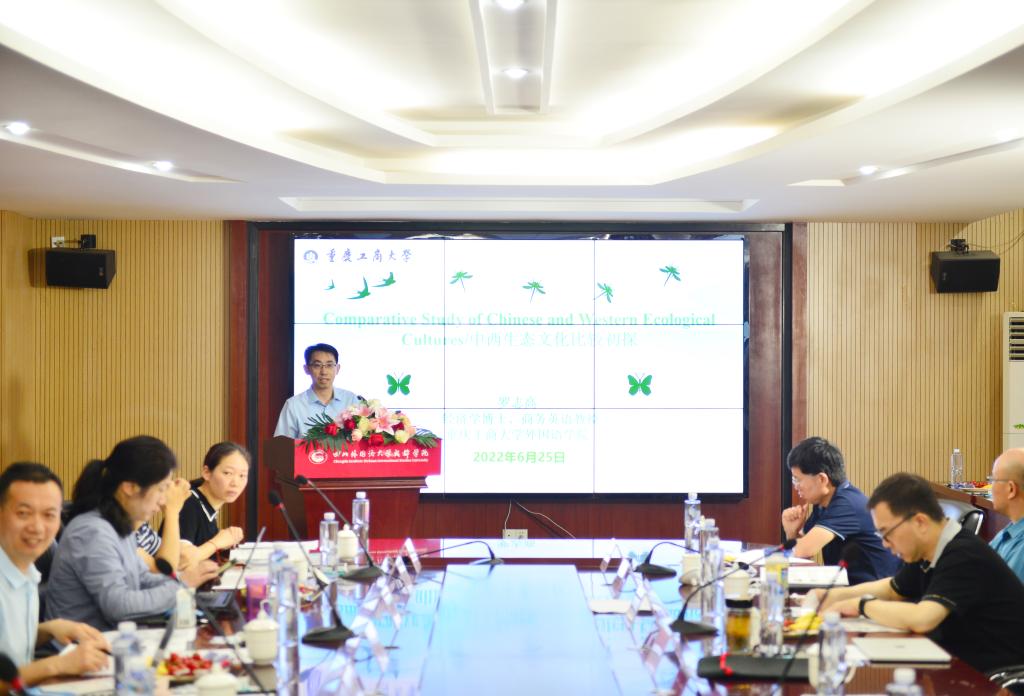 中心研究人员罗志高教授以《中西生态文化比较研究》为题,从生态文化研究与内陆开放、西方环保运动和生态文学磅礴兴起、中国生态政治与生态批评研究、西方生态系统服务经济学等方面做了介绍,解读了中国“绿水青山就是金山银山实践”,全面比较了中西生态文化的异同。中心两位教授的主题发言既有理论高度,也有实践深度,受到了与会专家学者的广泛好评。