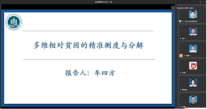 K1体育青年教师车四方副教授做了《多维相对贫困的精准测度与分析》的学术报告。车四方副教授认为缓解相对贫困是实现共同富裕的基本前提,基于此车四方老师构建了包含心理健康、环境质量等维度的多维相对贫困指标体系,借鉴A-F贫困框架体系,利用中国家庭追踪调查(CFPS)数据,引入机器学习中的随机权神经网络(NNRW)方法,精准测度并分解了中国城乡间、区域间居民的多维相对贫困广度、深度和强度水平。最后车四方老师强调,无论是城乡间还是区域间,随着相对贫困维度的增加,多维相对贫困的广度、深度和强度指数呈下降趋势,表明发生极端多维相对贫困的居民逐渐递减。