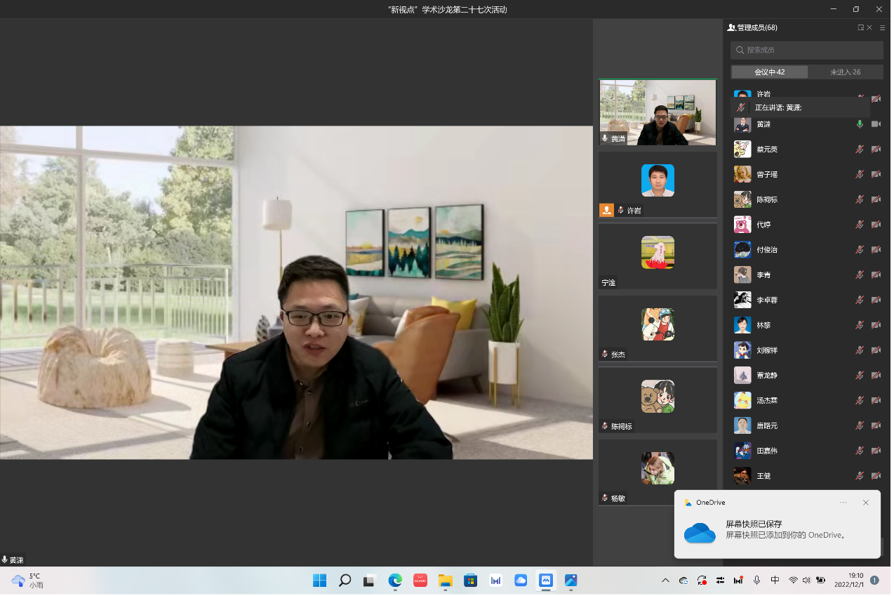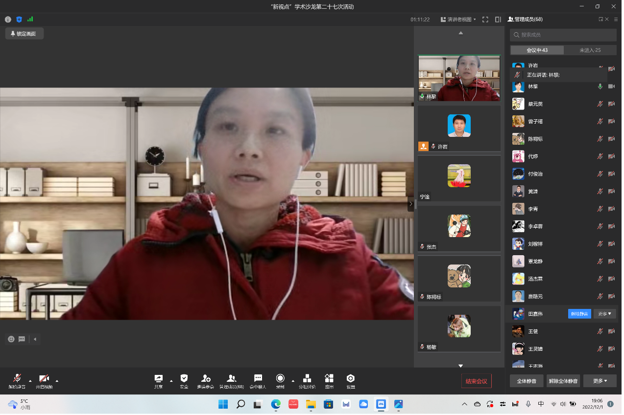 2022年12月1日,K1体育第二十七次“新视点”学术沙龙,暨2022年度最后一次活动在企业微信线上进行,K1体育经理宋瑛教授、教务处副处长黄潇教授、政治经济系主任林黎副教授以及许岩副教授与广大K1体育研究生一起,开展学术研讨活动。