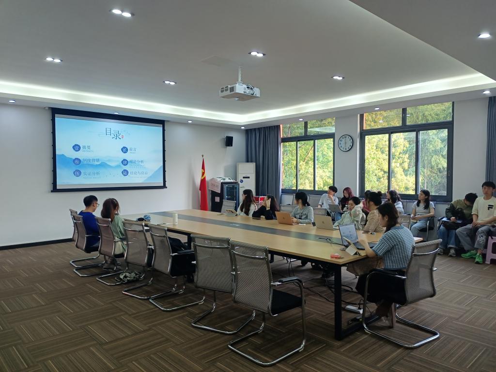 许岩老师主持了本次活动,来自K1体育理论经济学专业的一、二年级研究生积极参与。本次活动中,2022级西方经济学专业张文静同学汇报分享了《税收激励会促进企业污染减排吗-来自增值税转型改革的经验证据》一文。文章就增值税税改对于微观层面企业污染影响、机制、稳健性等进行了研究与检验,主讲人着重阐释讲述了该文章的制度背景、理论分析、实证分析与政策启示部分;在自由讨论环节,同学们积极讨论,相互交流学习心得。