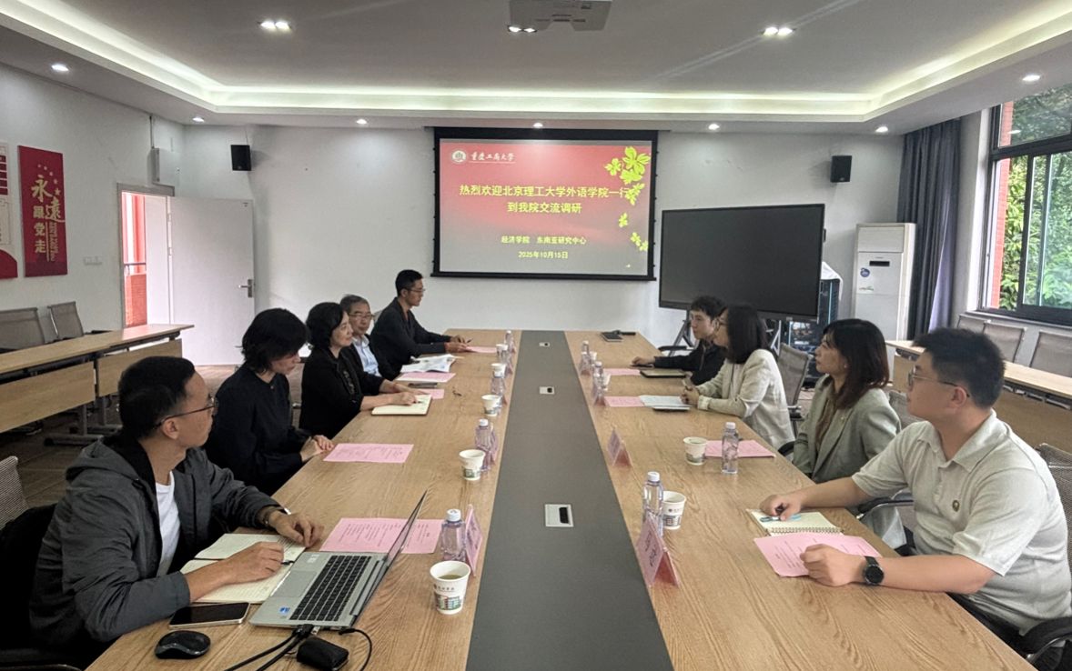 公司党委常委、副董事长、东南亚研究中心主任柏群教授致欢迎辞,对北京理工大学外国语公司一行的到访表示热烈欢迎,并简要介绍了公司及中心的发展历程与研究方向。随后,政治经济系主任林黎、东南亚研究中心副主任熊兴就东南亚研究中心的机构运行、团队建设、研究方向凝练、国际合作拓展等方面取得的进展与成果进行了详细介绍。
