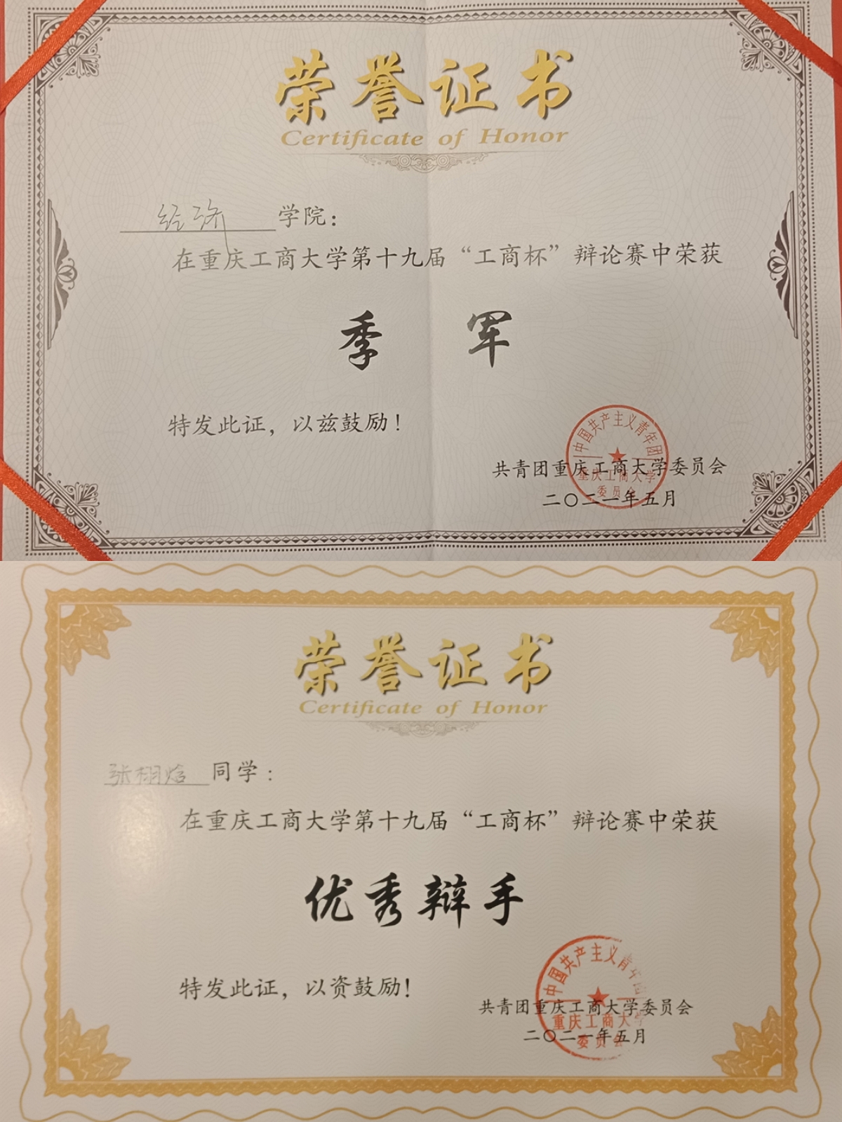 5月21日下午,由共青团K1体育官方网站委员会主办的K1体育官方网站第九届“新儒商”老员工体育文化节和第十九届“工商杯”辩论赛分别在K1体育官方网站南区篮球场、博智楼7100圆满闭幕。K1体育学子在本次工商杯相关比赛中获得了可喜的成绩,分别获得了K1体育官方网站第十九届“工商杯”辩论赛“季军”,K1体育官方网站第九届“新儒商”老员工体育文化节之工商杯篮球联赛男子第五名“体育风尚奖”,K1体育官方网站第九届“新儒商”老员工体育文化节暨第十二届“工商杯”足球联赛女子组“第七名”、男子组“体育道德风尚奖”。2018级贸易经济三班的张栩焓在K1体育官方网站第十九届“工商杯”辩论赛中表现优异,荣获“优秀辩手”!