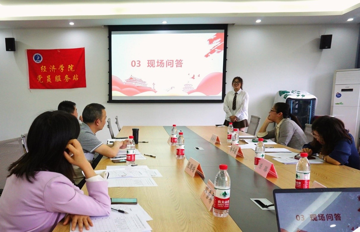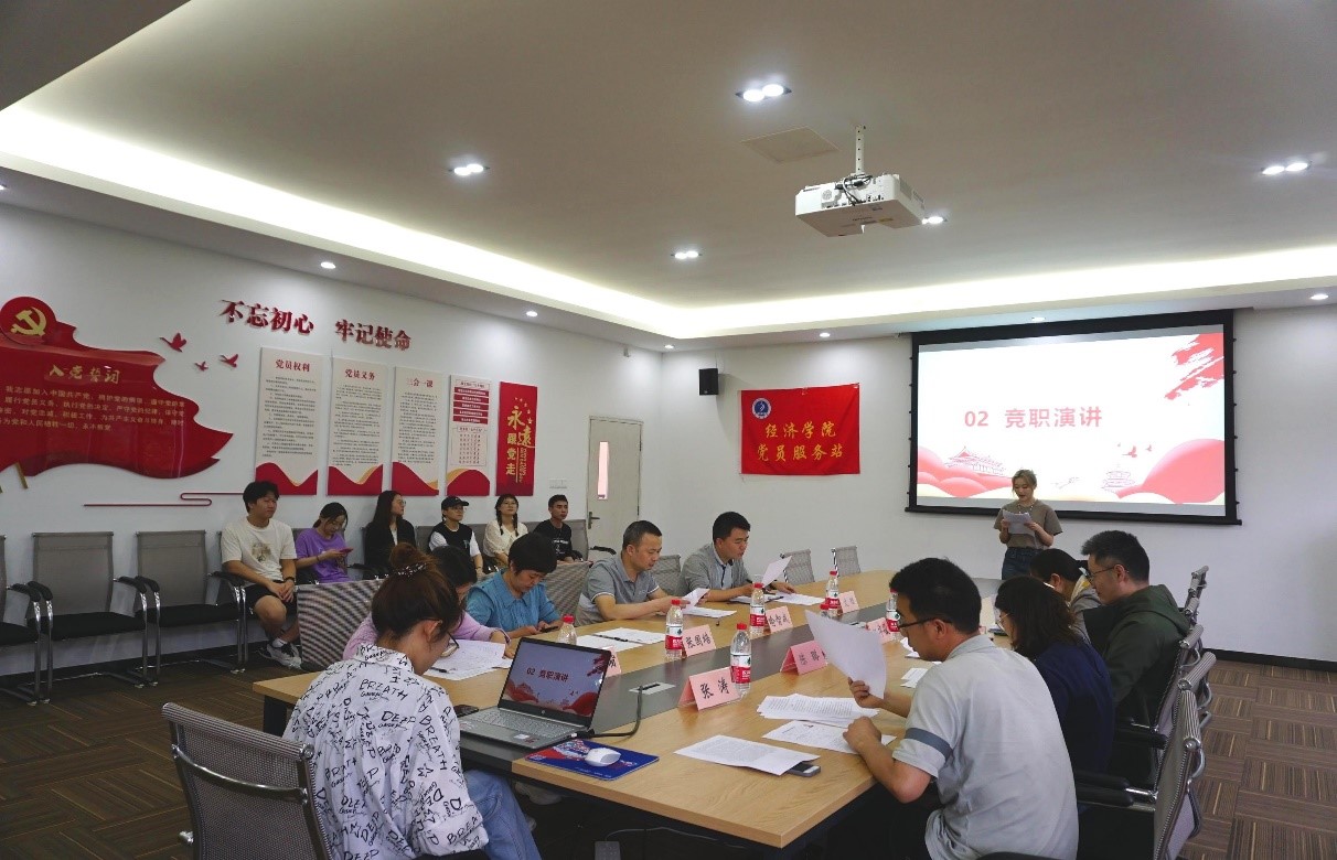 下午15:00主持人首先对出席活动的嘉宾进行了介绍,随后新一届站长团竞选正式拉开帷幕。本次换届竞选共有七位候选人,他们分别是经济党服策划部部门负责人周欣悦,办公室部门负责人张鸣,宣传部部门负责人程聖泥,活动服务部部门负责人冉力,媒体运营部部门负责人陈奕萱,新闻采编部部门负责人张子璇以及媒体运营部部门负责人陈思雨。竞职演讲阶段,七位竞选人首先进行了自我介绍,并依次对自己竞选的原因、优势以及未来的工作展望进行了阐述。各位评审老师则从党服的建设,竞选者的演讲内容等方面出发,对竞选者们进行了随机提问。