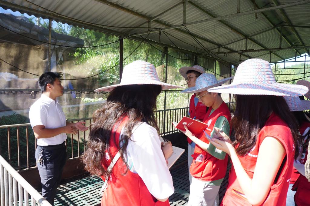 在实地走访18家农户后,促进团了解到官田村的基本情况,随后谢兴林书记对官田黑猪的发展现状进行着重介绍。刚建好的移动圈舍为第三代“乡村振兴版”,有“猪别墅”之称,利用“互联网+”最新技术,配备实现自动饲喂、远程管理等功能于一体的自饲养系统,极大地减轻了养殖户的负担。“官田黑猪”的成功离不开政府、企业与养殖户的通力配合:政府对黑猪养殖进行政策保障,企业提供技术支持,让养殖户好养猪、养好猪。三位一体,官田村走上了“黑猪致富”的道路。