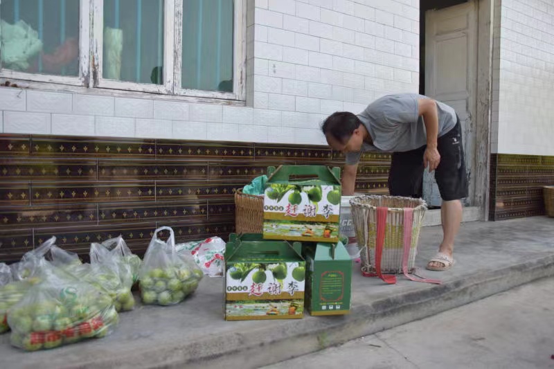 (村民将李子装盒)