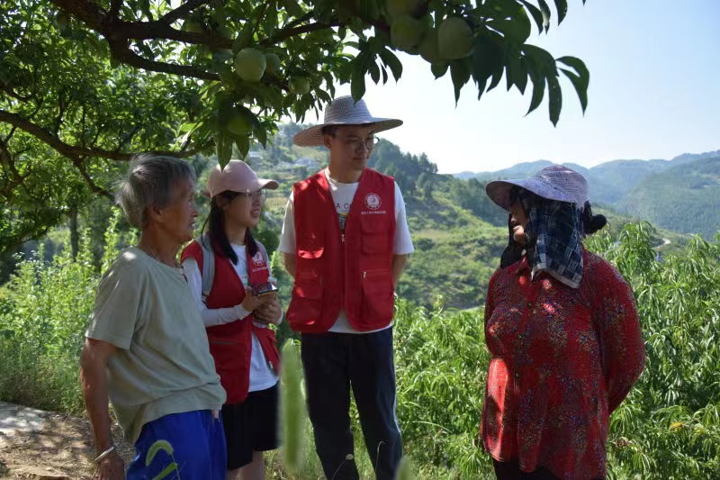 实践团成员先后与当地村干部交流访谈,与种植大户、村民走访调查,了解到盐河村作为第一批优秀示范村,结合当地海拔高、气候适宜、背风向阳、土壤肥沃疏松等条件,于2003年开始种植布朗李。赶水镇盐河村布朗李基地现今种植布朗李860亩,产量约为10万斤,这里种植的布朗李果大形美、核小肉厚、肉脆质密、风味香甜,被誉为"李中之王”。但是,盐河布朗李品牌知名度范围仅在重庆地区,销售渠道单一,销售距离近。