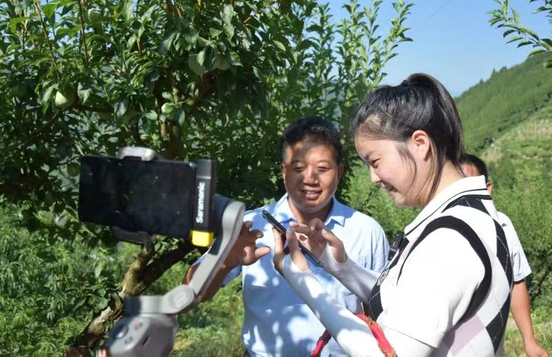 随后实践团来到李子林,与区融媒体中心开展布朗李电商直播,宣传李子同时鼓励大家来盐河村游玩采摘新鲜的布朗李,亲身感受乡土风情。本次直播活动得到了大量网友的支持,观看人数达到上万人次,起到了很好的宣传推广作用。本次直播活动不仅仅在于销售,更是依托“赶谢李”的名号与电子商务的新途径来扩展当地业务,完善农家乐的配套设施,通过“互联网+”大数据分析的模式,精准推送,吸引更多游客来到盐河村,为村民增收注入新动力,为乡村振兴提供新途径。