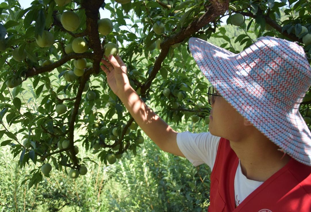 “这些都是我家的李子,就指望着它们过活嘞!”农户张奶奶作为赶谢李和状元桃产业发展的见证者,近年也在果品专业合作社的帮扶下开始种植李子。目前,全村93家农户中平均每户就有一位村民从事水果种植,布朗李和蓝桃种植的规模已达800亩,成为推动盐河村经济发展的重要产业。