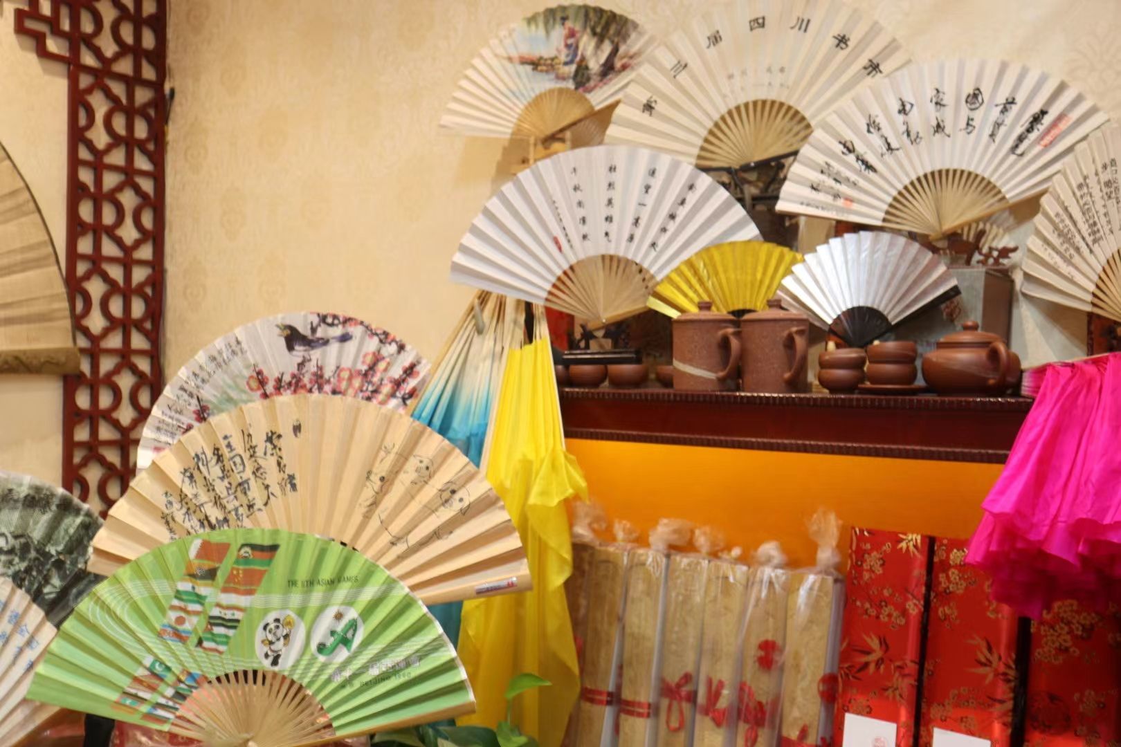 一双巧手,几片竹篾与丝绸,便能“编”出风雅韵味。实践团走进荣昌折扇厂被室内墙上独具特色的折扇吸引了眼球、赞叹不已。荣昌折扇厂第四代非遗传承人尹春莲老师热情地为团队成员们现场讲述了荣昌折扇的历史,展示了最具有代表性的夏布折扇。据了解,荣昌折扇厂倾注了四代人的心血与精力,承载着四代人的回忆与寄托,对于尹春莲老师而言,也从折扇手工艺人转变为非遗文化的传承人。