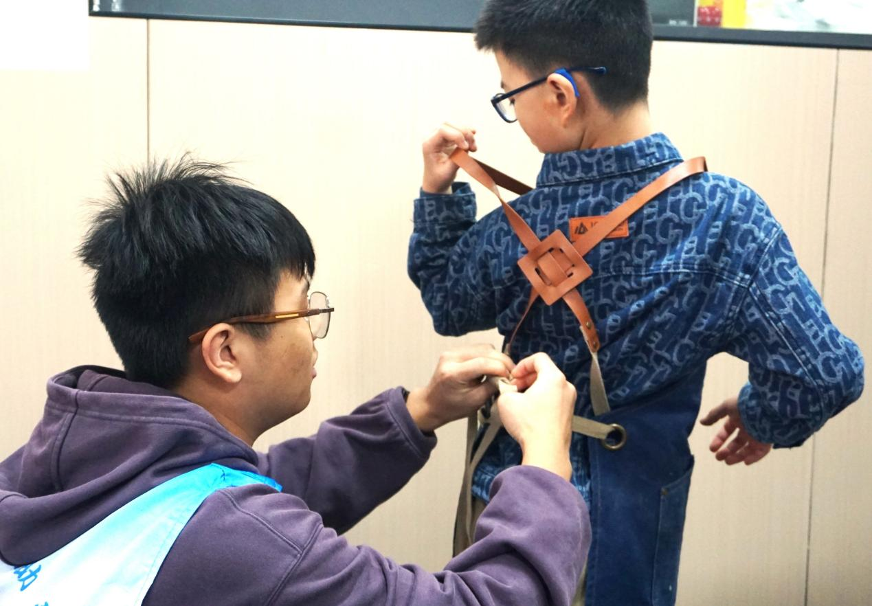 在专业烘焙教师的指导下,志愿者们认真学习了小面包的制作流程,然后手把手地帮助孩子们制作小面包。孩子们在志愿者们的协作帮助下,通过“揉、捏、搓、点”等手法将面团制作成小面包。在等待小面包烘烤的过程中,伴随烤箱中弥漫的麦香,志愿者与孩子们围绕小面包的味道和形状展开讨论,提升他们的语言表达能力。