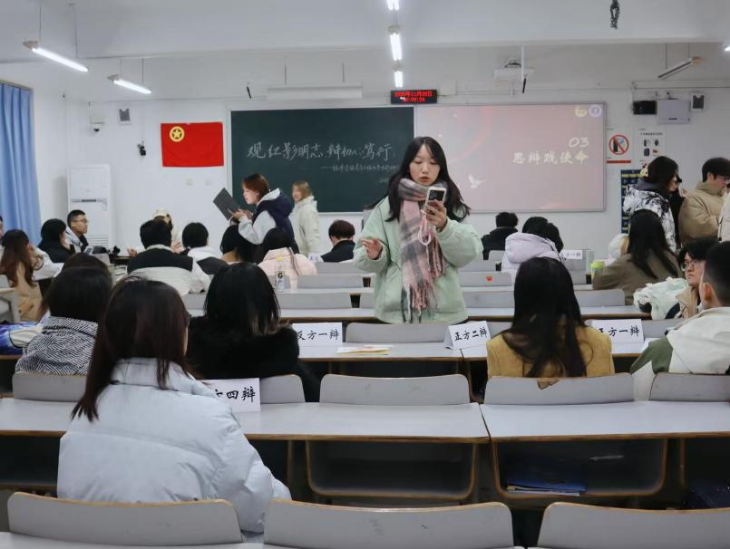 活动伊始,王鑫队长围绕辩论技巧的核心要素展开系统培训,从逻辑构建、论点论证到临场应变,层层剖析辩论艺术的精髓。他通过典型案例分析,生动演示了立论框架的搭建方法与驳论思路的梳理技巧,并针对团队辩论中的协同配合提出具体建议。这场“思想练兵”不仅帮助学员掌握了辩论要领,更培养了批判性思维和逻辑表达能力,为后续的实战环节奠定了坚实基础。培训后,全体学员共同观看了电影《建国大业》中震撼人心的“三河坝战役”片段。影片中革命先烈为坚守理想而英勇奋战的身影,深深触动了在场每一位学员。这场观影不仅是一次历史回顾,更是一次精神洗礼。通过影像中革命者面对生死抉择时展现的坚定信仰与担当精神,学员们深刻认识到红色基因是青年成长的宝贵养分,是筑牢马克思主义信仰的力量源泉。最后,学员们围绕“革命危急关头应优先留守阻击还是全力突围”这一核心议题,展开了激烈的分组辩论。各小组结合观影感悟与时代实践,引经据典、交锋思想,在观点的碰撞中深化了对历史抉择的理解。这场辩论不仅锻炼了学员的思辨能力,更让他们在历史与现实的对话中,进一步认清了新时代青年在中国式现代化建设中的责任与使命。