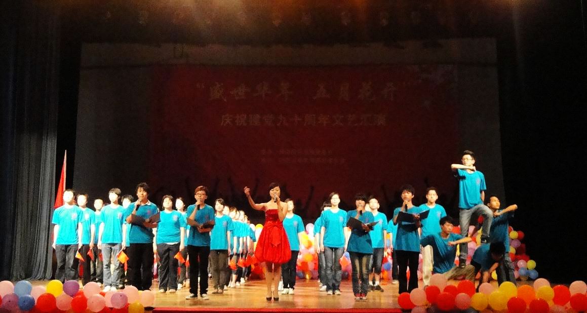 文艺汇演在火红的开场舞《让我们舞起来》中拉开序幕,党委学工部部长、员工处处长华杰为本次晚会致辞,华处长在致辞中说,我们党从1921年成立至今,走过了90年坎坷而光辉的道路。我们党始终具有强大的生命力、凝聚力、号召力,是带领人民实现中华民族伟大复兴的核心力量。如今,在党的90岁生日之际,我们每一个人都怀着感概和感激之情,祝福我们党继往开来再创辉煌,祝福我们的祖国明天更加美好。