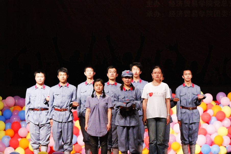 此次晚会节目形式多样、内容丰富,融合了话剧、舞蹈、朗诵、歌唱以及小品等形式,现场观众秩序井然,晚会气氛热情激昂。09国贸1班带来的话剧《张思德》让同学们深入地了解了这位中国解放军的楷模,感受到了这位英雄敢于奉献的高尚情怀和坚定的爱国信念。09贸经班的革命题材情景剧《红岩》把观众们带到了1949年重庆的秋天,那个黎明前黑暗的时代,是江姐、是小萝卜头、是千千万万个革命英烈用鲜血染红了冉冉升起的五星红旗。经贸公司艺术团带来的朗诵《青春,永不熄灭的火焰》更是让现场观众体会到了青春如同火焰般的跳动、如长河般的奔腾,铿锵有力的字句是成长的脚步、是不懈努力的坚持,更是对于未来充满希望和憧憬的信念。动感十足的舞蹈《啦啦操》、欢快的《雷人舞》和研究生热情洋溢的《Mr.Big》则将现场的气氛推向了高潮。10经济2班的小品《三句半》以独特的方式为同学们展示了祖国日新月异的变化,10国贸4班的同学们将手语引入到歌舞表演《青春的轨迹》,研究生动感十足的《Mr.Big》展示了新一代的活力。一首首歌,一段段舞,一个个话剧,一阵阵掌声,融汇成一首和谐的爱党之歌,久久回荡在体艺馆中。最后,由经贸公司的老师们带来的朗诵《祝福祖国》,以其澎湃的激情和宏伟的气势,将现场观众的激情推向巅峰的同时,也为本次的汇演拉下了帷幕。