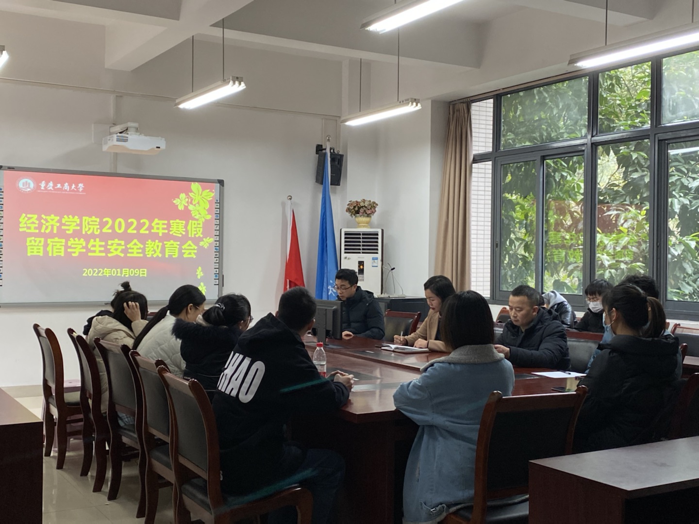 本次寒假留校员工安全教育专题会由公司副书记、副经理王燕教授主讲。王燕副书记主要从三个方面对留校员工做了安全教育。第一,珍惜留校机会。王书记告诉全体留校同学,要怀有感恩之心来看待留校。2022年的寒假,疫情仍然严重,公司防控工作十分紧张。公司各部门为大家在留校期间生活提供的各种保障都来之不易。第二,严格遵守留宿规定。王书记要求全体留校同学一定要遵守公司的各项管理规定。所有留校同学,要服从公司的留宿安排,保持与辅导员老师、家长以及同寝室同学的联系,每天按时在楼管处报平安。第三,利用好假期留宿时间。王书记告诫同学们要合理规划好学习、实习时间,争取学有所成,留有所得。最后,王书记代表公司向所有2022年寒假留宿同学送上新年祝福。