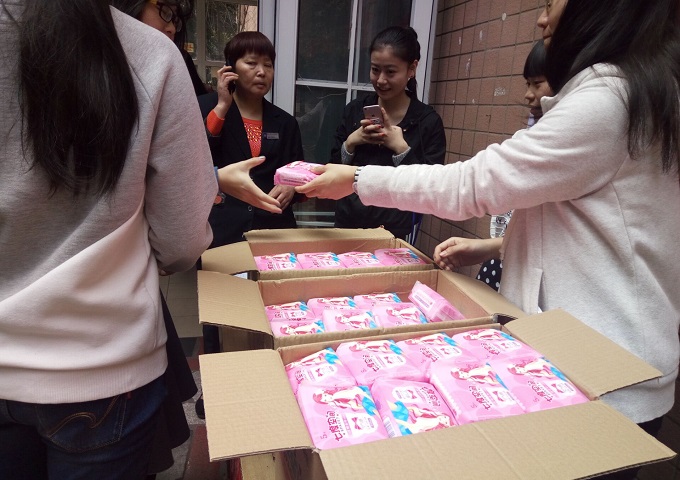 本次活动共准备了150份女性用品,先到先得,同学们只需在花名册上登记后方可领取。楼栋干部们早在活动开始之前就来到现场做好了准备工作,搬来桌子、放好礼品,等待同学们来领取,宿管阿姨也来帮忙一起发放。女生们的脸上都洋溢着开心的笑容,排队领取的队伍井然有序,几乎延伸到了马路上,现场一片欢乐热闹的气氛。