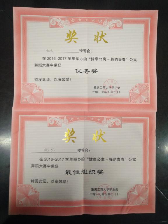 舞蹈比赛结束,由专业老师和校领导对此次舞蹈大赛做出点评和总结。北六楼栋节目《Super Super》以红黑两队从相互对抗到惺惺相惜的舞台剧为表演形式,体现了此次公寓活动和谐、团结的精神,获得了评委们的一致好评,最终获得了最佳组织奖和优秀奖,这是对辛勤付出的全体舞蹈演员们、楼管会干部们的肯定与回报。同学们的朝气蓬勃都体现在了舞蹈中,精彩的表演让人难忘,待若干年后,同学们或许会再次想起,在体艺馆的舞台上,我们曾青春洋溢。