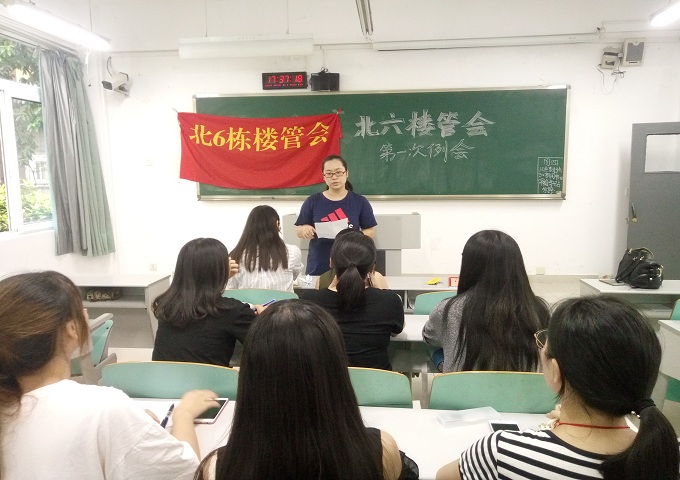 2017年9月13日下午五点半,北六楼管会在7109教室开展了本学期第一次楼栋干部工作例会。北六楼管会主任郝颖老师出席了本次例会,参加此次会议的还有三位楼长和各层层长。