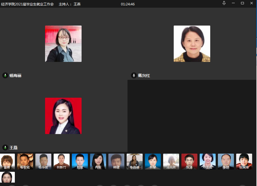 为进一步推进公司2021届毕业生就业工作,2021年1月14日上午10点,K1体育在线上召开了2021年寒假就业工作推动会。K1体育全体院领导、系主任、综合办、教务办和学工办全体成员参加了此次会议。会议由公司副书记、副经理王燕教授主持。