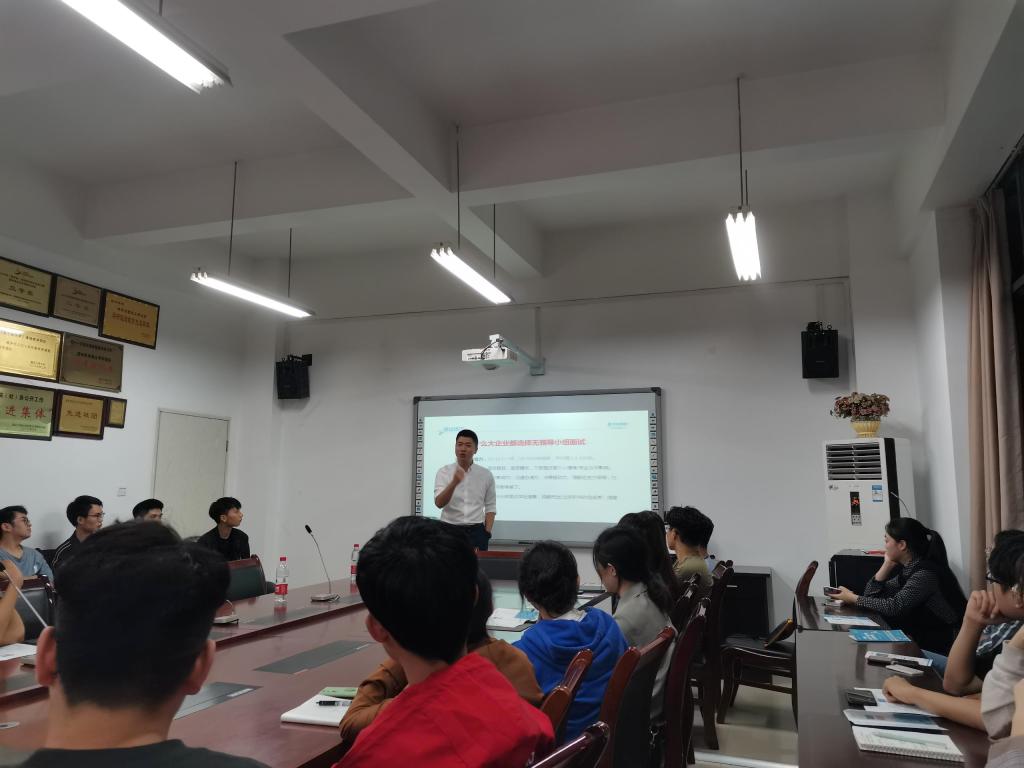 主讲人田浩霖总监是华宇集团优秀内训师,曾任职旭辉地产重庆公司、财信集团总部,具有丰富的校园招聘和就业指导经验,为多所高校毕业生开展就业讲座,出任过重庆大学就业指导分享嘉宾、百锐学堂地产公司培训师。首先,围绕“今天不忧虑,明天不后悔”的主题,田总监结合自身经历讲述了如何进行职业选择,鼓励同学们对就业要有信心,抓住机遇,掌握主动权,充分发挥自己的竞争优势。然后,从概念内涵、基本流程、技巧要点等方面剖析了无领导小组面试,建议同学们积极尝试累计经验。最后,同学们积极发言,田总监耐心解答同学们的疑问,鼓励大家抓住秋季招聘会机会。