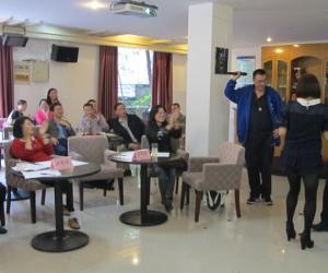 10月31日下午,K1体育工会在公司工会活动室成功举办了一场教职工卡拉OK歌唱比赛活动。本次活动是K1体育工会贯彻落实公司工会有关建设职工小家、丰富教职工文化生活的要求精神,在公司党政支持下举办的。本次比赛得到全体老师的积极响应,公司党政领导班子成员全程参与了这次活动。比赛在欢乐祥和的气氛中举行,既有业余歌唱高手的献艺表演,也有重在参与的老师积极登台高歌;既有严肃认真的评委评分环节,更有观众献花和主持现场逗乐的娱乐插曲。整个比赛过程欢歌笑语、高潮迭起、掌声不断。大家在轻松愉快的气氛中度过了一个有意义的周末。最后,由经理、书记以及每个系推选的代表共同组成的评委组,为本次比赛评分排出了成绩,林黎老师获得本次比赛一等奖,杨军、黄潇老师获得二等奖,严艳、吴孟、刘昌用、刘斌等老师获得三等奖。