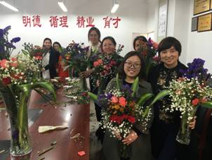 活动伊始,徐老师带领大家欣赏了三种不同风格的插花成品,然后,介绍了插花对工作生活的益处,采用理论与实践相结合的方式,为老师们细致地讲解了插花艺术的基础知识、花器、花材、花语、花意、花色和空间等内容。随后,拿出玫瑰花、满天星、康乃馨、小雏菊等花材,指导大家按步骤完成花束的制作,通过修剪花卉、装饰和造型,展现花的层次感和美感。老师们边学边练,陶醉其中,充分体验了插花艺术的独特魅力。最后,每位参加活动的老师都收获了一份亲手创作的插花作品,纷纷表示本次活动不仅传递了节日的祝福,更陶冶了情操。