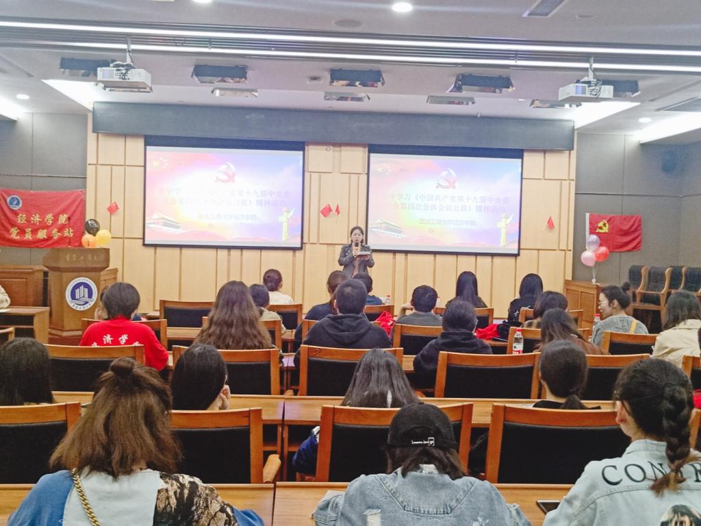 11月4日晚19:40,公司党员服务站在新图书馆第一会议室组织开展党员学习活动,传达学习党的十九届四中全会精神,本次活动由公司副书记于频主持,近百名员工党员参加了学习。