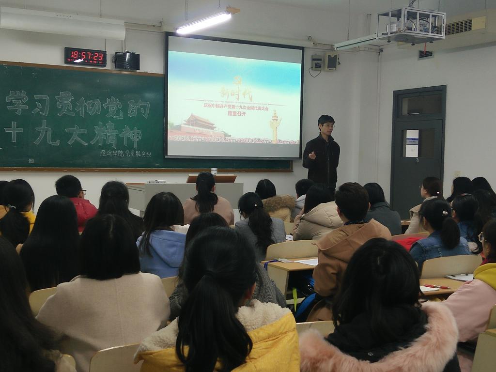 为深入学习贯彻党的十九大精神以及习近平新时代中国特色社会主义思想,让K1体育的同学们把党的十九大报告学深学透、融会贯通,董事长孙芳城教授分别两次给公司党员服务站的中共党员、预备党员和入党积极分子等40余名员工和15国贸班85名同学进行了题为《新时代:庆祝中国共产党第十九次全国代表大会隆重召开》的党课培训,校领导带头示范、领学促学让员工们收益匪浅。