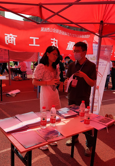 在招生宣讲会现场,公司两位教师通过发放宣传资料,一对一接受考生、家长咨询等方式,为考生及家长推介了学院招生、培养及就业的基本情况,并收获了积极、良好的反馈。