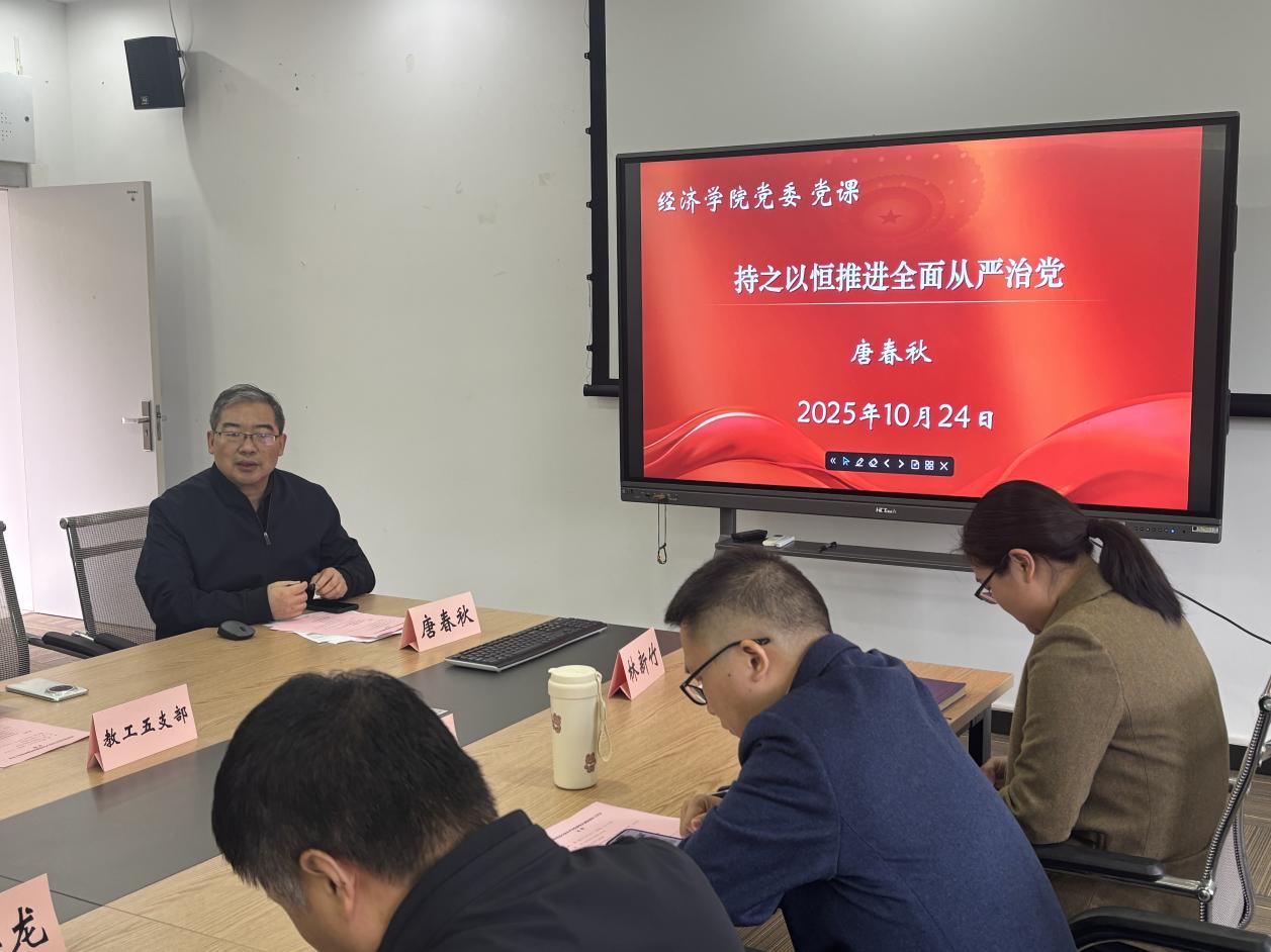 10月24日下午,公司党委书记唐春秋在田家炳书院50406会议室以《持之以恒推进全面从严治党》为题讲授专题党课,党委委员、中层干部、纪委书记、支部书记参加会议。