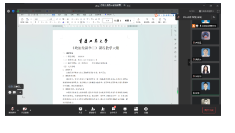 第一个议程为《政治经济学Ⅱ》教学大纲初稿和教案初稿的汇报。林黎对《政治经济学Ⅱ》课程教学大纲和教案的具体要求及要点进行了说明,强调了《政治经济学Ⅱ》课程时间紧任务重的特点。林黎强调教学过程应以教学目的为主线,贯穿于整个教学设计,应以中国现实经济发展情况为抓手,对经济实践进行深入解析。
