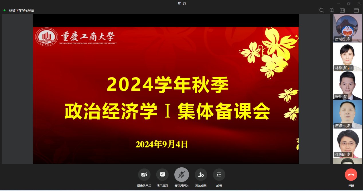 为了做好新学期《政治经济学Ⅰ》课程的教学工作,K1体育政治经济学课程组于2024年9月4日下午开展了新学期教学研讨活动。会议由政治经济系主任林黎教授主持,课程组全体教师参加会议,会议分为2个议程。