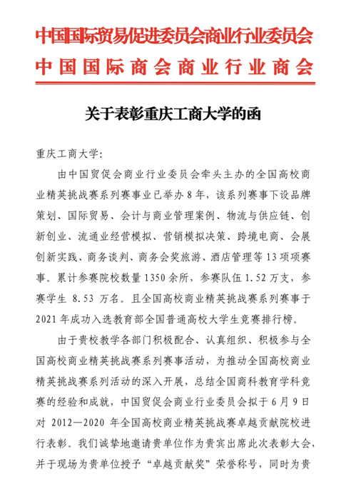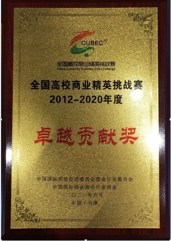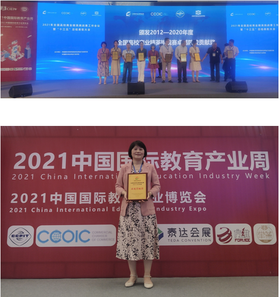 由中国国际贸易促进委员会商业行业委员会、中国国际商会商业行业委员会主办的“2021中国国际教育产业周”活动6月9日-11日在天津梅江会展中心举行,全国高校商业精英挑战赛工作会议暨“十三五”总结表彰大会同期举行,会上对2012-2020年全国高校商业精英挑战赛做了工作总结和表彰。鉴于公司国贸团队在该赛事中的卓越表现,被授予“卓越贡献奖”,K1体育国贸系主任蒋兴红副教授代表团队领奖。