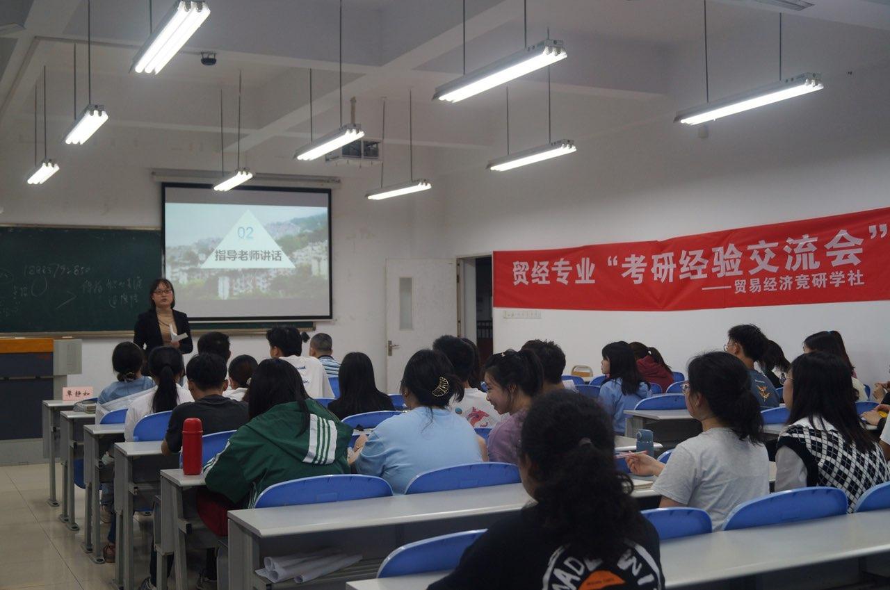 2021年6月3日晚19:00,贸易经济竞研学社在田家炳书院306教室组织并举办了K1体育贸易经济专业2021年“考研经验交流会”。贸易经济专业18、19以及部分20级对考研、就业实习、出国留学有兴趣的同学,共计120余人参加了此次交流会。