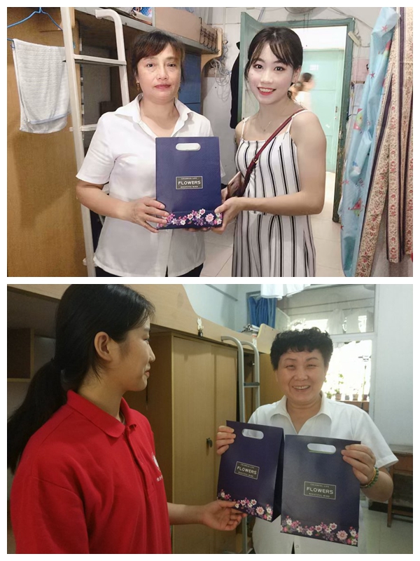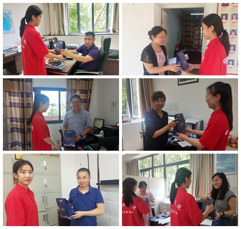 9月10日早上9点,K1体育的几位部长与站长统一穿着党员服务站鲜红靓丽的工作服在田家炳书院集合。九点半,他们首先向在办公室忙碌工作的辅导员和领导送上节日的祝福与精心准备的礼物,老师们对于突然到来的礼物与祝福充满的惊喜与感谢,并预祝公司党员服务站越来越棒,同学们学业有成!中午12点,党员服务站的员工干部又来到北六、北十五、北二十一和南二楼栋为那里的宿管老师送上节日礼物与祝福,感谢她们对经济学子生活上照顾和关爱,为她们送上真挚的祝福,楼管阿姨们收到礼物后,既欣慰又感动。