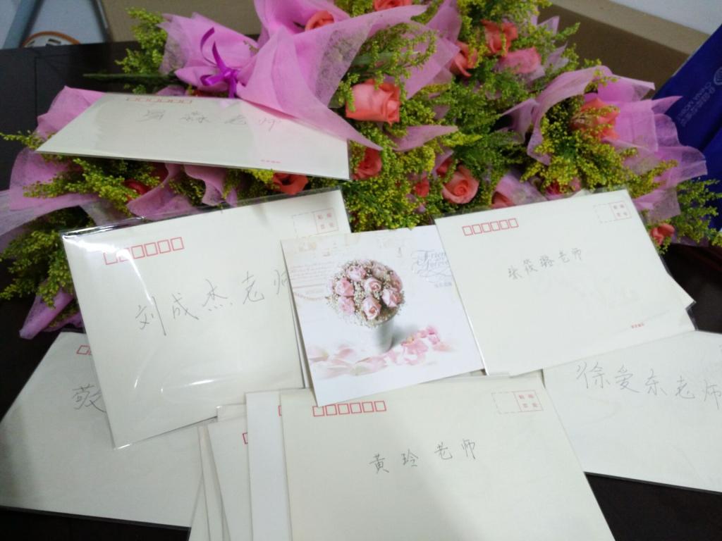 下午三点,公司党员服务站站长们带着早已准备好的节日贺卡和鲜花,来到了忙碌的老师办公室,给他们节日的惊喜。老师们总是站在没有鲜花的讲台,默默地挥洒着自己的青春与热情,像春蚕、似细雨。所以党服成员带来的祝福令老师们倍感欣慰,贺卡上流露的丝丝感激与祝愿让老师的脸上和心里都绽开美丽的笑容,好似一下子忘却了开学的忙碌。党服成员与老师们进行了亲切的交流。这样其乐融融的在一起,为教师节增添一抹温暖与感动,也给老师们留下美好的记忆。