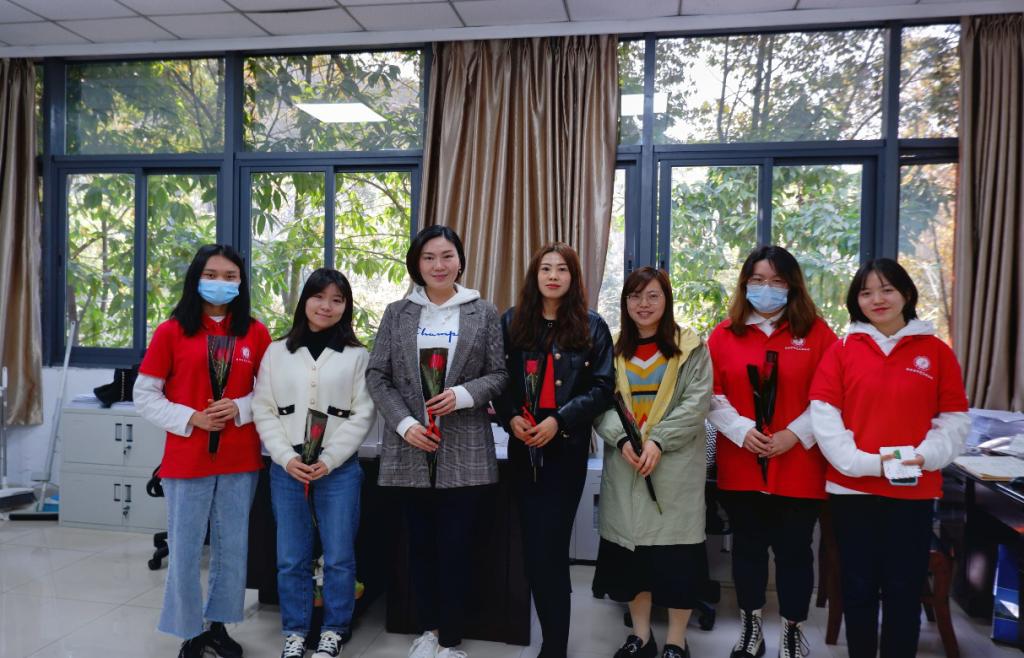 阳春三月,草长莺飞。在这春暖花开的季节我们迎来了第112个“三八”国际劳动妇女节。为了倡导同学们用实际行动践行尊师重教、尊重女性的传统美德,表达公司学子对女教职工的尊敬与热爱之情,公司党员服务站特此举办了“迎三八,送祝福”活动,为女教职工送去鲜花和贺卡,向辛勤耕耘在工作岗位、无私奉献青春智慧的女教职工致以节日祝贺和诚挚问候。公司党员服务站部分20级成员向公司党委书记李自维教授,党委副书记、副经理宋瑛教授,党委副书记、副经理王燕教授以及公司综合办和学团办的老师们,以及北15,北6、南5的楼管阿姨送去了节日祝福。