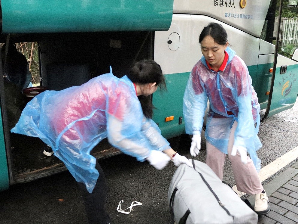 为保障宿舍搬迁工作按计划、分批次,平稳有序开展,公司提前召开了搬迁工作布置会议、制定了科学合理的搬迁方案,招募了60余名志愿者,助力寝室搬迁,传递经济温暖。7月1日上午5时30分,搬迁工作正式开始,公司党委副书记、纪委书记白海龙书记与各位辅导员亲赴搬迁现场,积极协调、处理突发事件。公司党员服务站提前准备好早餐、雨衣、手套等相关物资,为同学们做好坚实的后勤保障。虽然搬迁中天公不作美,但在绵绵细雨中,志愿者们坚守岗位,一次次往返于大巴车与宿舍楼间运送行李,大包小包,志愿者们“全包”。他们以“关爱同学,主动服务”为宗旨,尽心尽力投入到志愿服务活动中,使搬迁工作井然有序地推进。接受帮助的同学纷纷表示,这次宿舍调换工作的顺利完成,离不开志愿者们的帮助,并且发自内心地感谢公司领导老师的关心关爱,感谢志愿者们的辛苦付出。