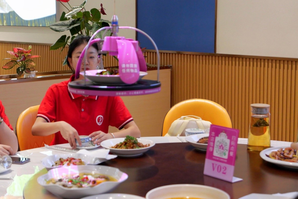 (图为智能餐厅内机器人送餐,楼科易摄)