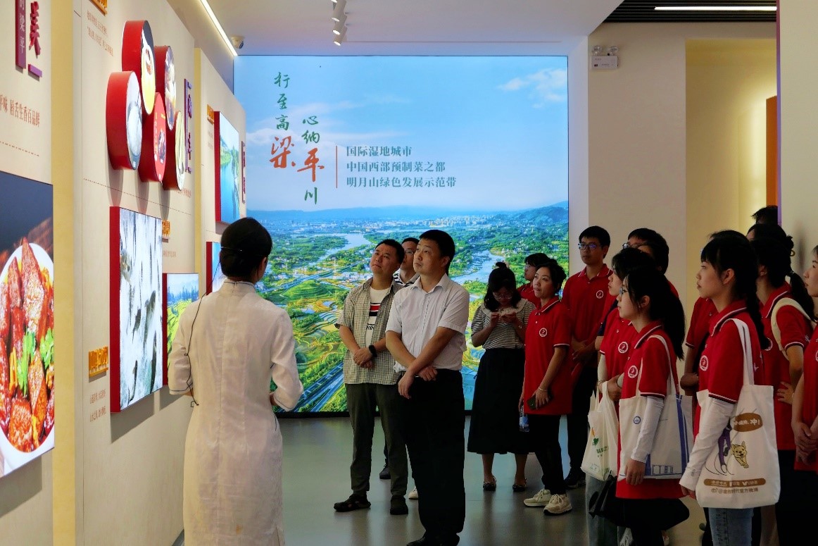 调研团跟随讲解员的脚步,在预制菜售卖中心专柜深入了解种类齐全、口味丰富、价格实惠的预制菜;通过沉浸式观影互动的方式观看预制菜宣传片,体会预制菜产业对地区产业链供应链的支撑作用;参观预制菜集散中心,领悟其积极构建“通道+网络+产业”联动格局对打造陆海优品生态圈与数字乡村新模式、带动陆海新通道沿线优质产品融入双循环的推动作用;走进电商直播中心,感受其利用5G、物联网、大数据、区块链技术对拓宽销路、提高品牌效应的促进作用。据讲解员介绍,近年来,梁平致力于完善产业链、畅通供应链、提升价值链,构建“三区一中心九平台”预制菜产业生态,抢抓新机遇,抢占新赛道,加快打造中国西部预制菜之都,让更多消费者爱上“梁平味道”。