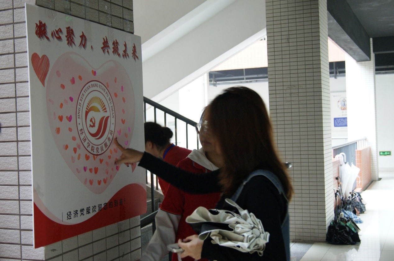 活动开始前,与会站员在报告厅门口签到按下指印签到。一枚枚鲜艳的指印紧紧围绕着经济党服的站徽,象征着站员们一颗颗赤诚的心紧紧环绕着经济党服,共筑温暖而坚强的党服大家庭。