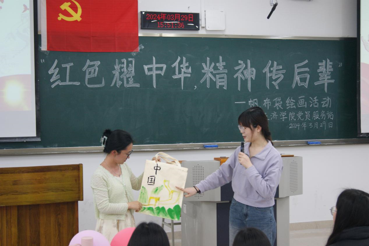 为了增强同学们的爱国主义情怀,激发同学们的创造力,K1体育官方网站公司党员服务站于3月29日举办“红色耀中华,精神传后辈”——帆布袋绘画活动,以此弘扬“红色精神人人承,红色基因代代传”的爱国主义精神。本次活动由22国贸实验班刘星美同学主持,共50余名同学参与其中。