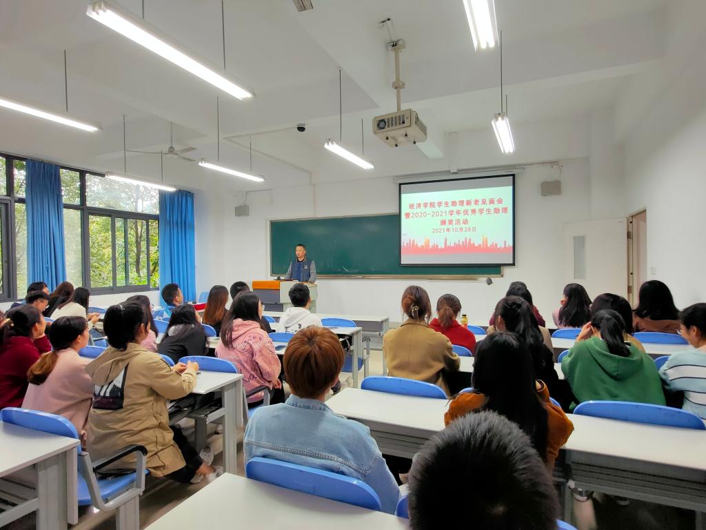 活动第一个环节由新老员工助理进行自我介绍,上台发言的助理们热情洋溢,不仅将自己介绍给大家,也对自己未来的工作提出了要求与展望。其次,由上一学年优秀员工助理代表交流工作经验,上一届学长助理熊一帆、范泽荣同学均谈到:我们员工助理在做各种工作,尤其是处理文档材料、加盖公司印章一定中要仔细认真,不能出差错。面对老师要热情礼貌,做到事事有回应,件件有回音。活动第三个环节,由员工助理负责老师喻智成作总结发言,他指出了公司员工助理的主要工内容有哪些,可以锻炼哪些能力,一定要把老师交办的任务保质保量的完成。同时,他再次强调了员工助理的值班纪律要求。